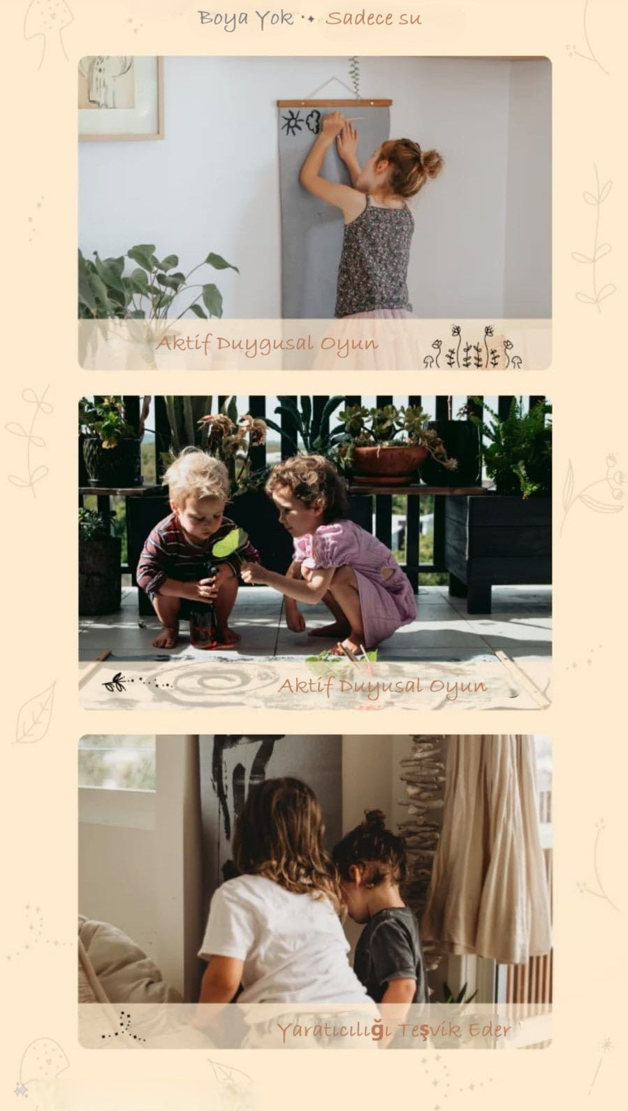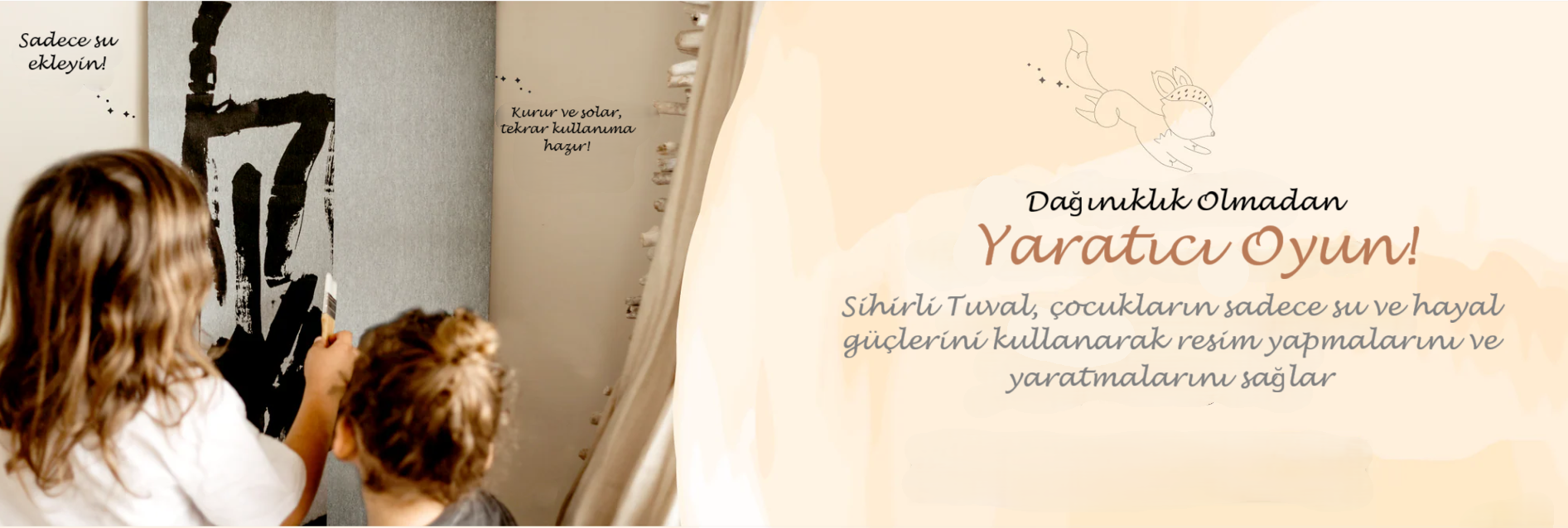 Sihirli Tuval ve Fırça Setimiz, yürümeye başlayan çocuklardan çocuklara kadar geniş bir yaş aralığı için mükemmeldir. 6 aylıktan 7 yaş üstü çocuklara kadar tüm çocuklar için güvenli ve keyifli olacak şekilde özel olarak tasarlanmıştır. Ürünlerimiz, çeşitli gelişim aşamalarında duyusal oyun, ince motor becerileri gelişimi ve yaratıcı ifadeyi teşvik eder. Tabiki resim yapmayı seven her yaş grubu Sihirli Tuval ile resim yapabilir