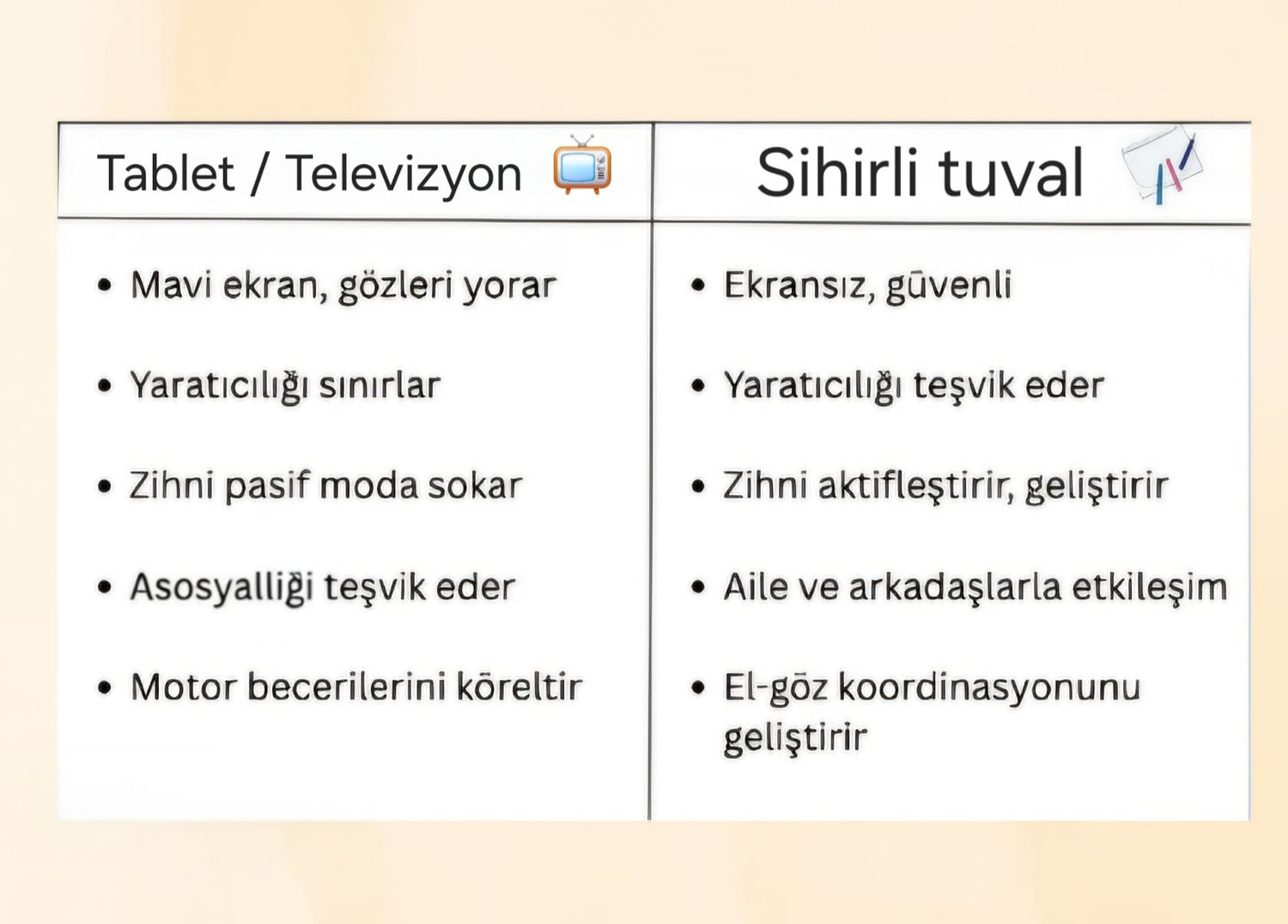 Kabı suyla doldur → Fırçayı batır→ Çizimler belirir → Kuruyunca kaybolur.